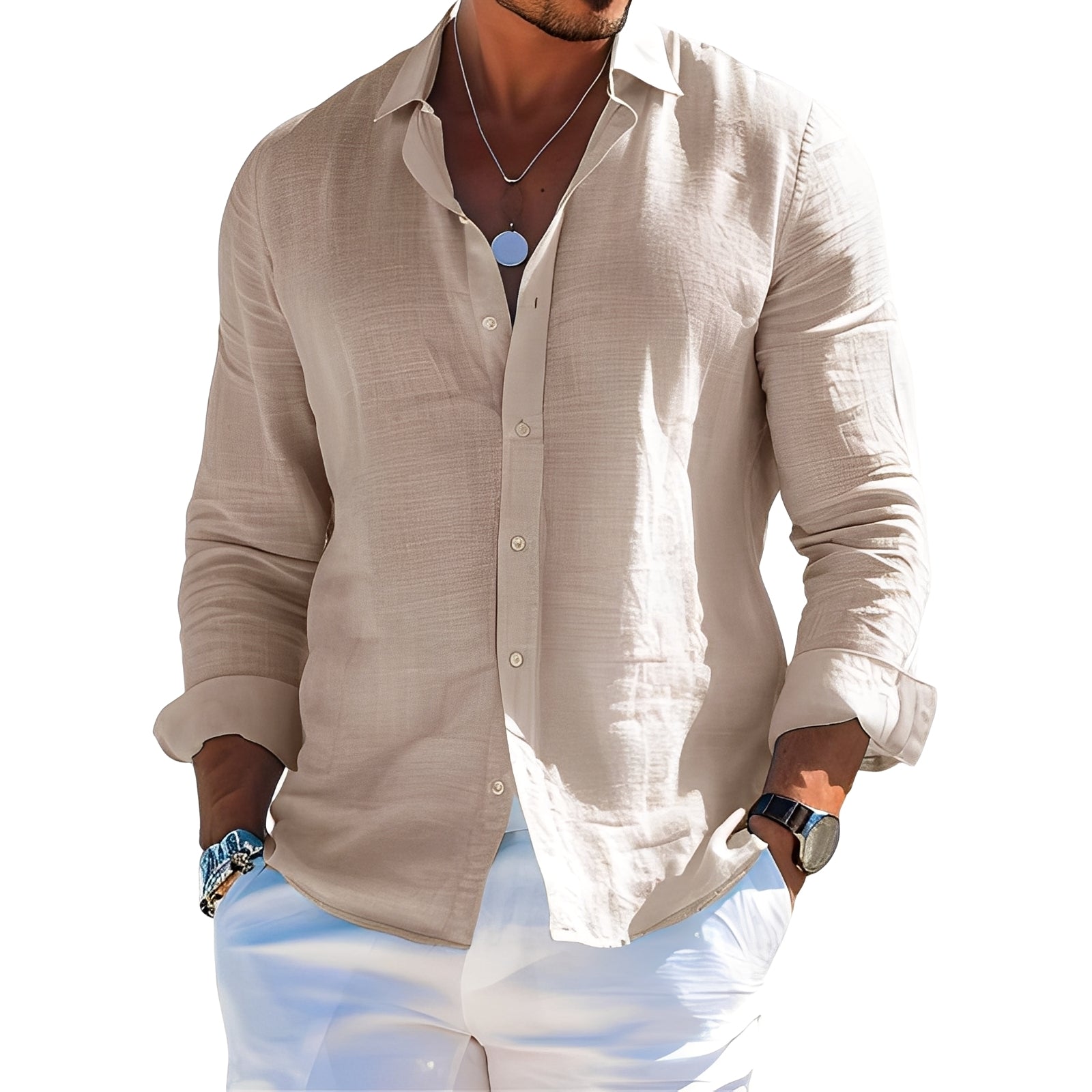 Dieses langärmelige Hemd Félicien für Herren ist perfekt für einen leichten und entspannten Look bei warmem Wetter. Hergestellt aus einer Mischung leichter und luftiger Stoffe, sorgt es für Komfort und Frische selbst bei Hitze. Der lockere, aber gepflegte Schnitt erlaubt es, die Ärmel hochzukrempeln für einen zugleich lässigen und eleganten Stil. Mit seinem offenen Kragen und der weichen Struktur ist es ein vielseitiges Kleidungsstück für einen Spaziergang am Strand oder ein einfaches Abendessen.