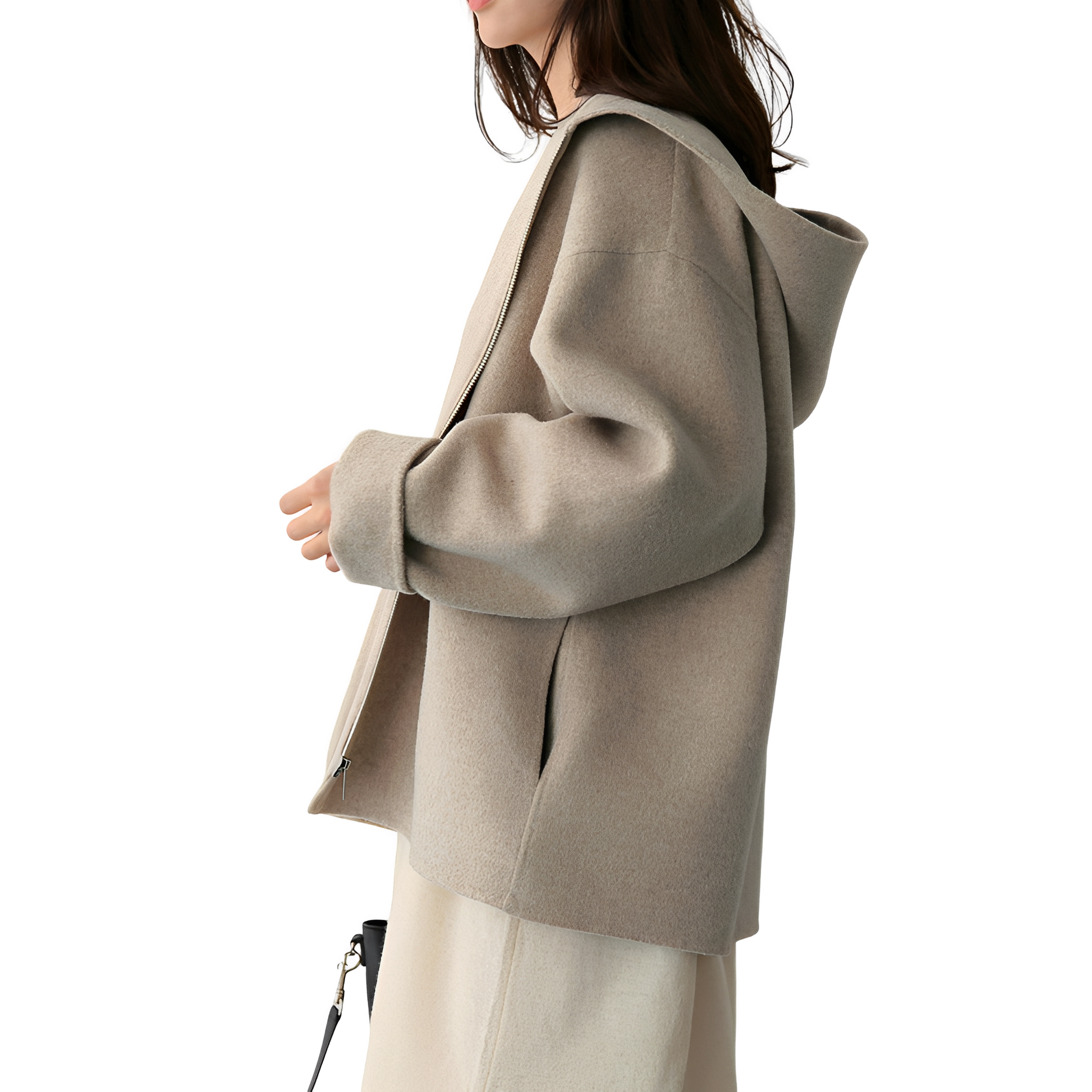 Julie - Weit geschnittener Wollmantel mit Reißverschluss für Damen