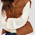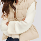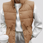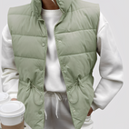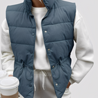 Le gilet Aimee se démarque par son tissu matelassé léger qui offre une chaleur agréable sans être lourd. Sa coupe moderne avec un seul bouton offre un style à la fois décontracté et chic. Parfait pour le quotidien, les loisirs ou les promenades, ce gilet se marie facilement et complète chaque tenue avec élégance.