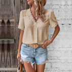 Caroline - Blouse en dentelle élégante avec col en V pour femmes