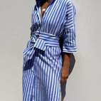 Christel - Robe polo longue à rayures pour femme