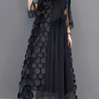 La robe Kassandra se remarque par son design en tulle léger et ses manches mi-longues dépareillées qui donnent une touche moderne. Le col rond assure une apparence classique, tandis que la coupe fluide offre liberté de mouvement et confort. Idéale pour les fêtes, événements en soirée ou dîners chics. Une robe qui combine féminité élégante et charme festif.