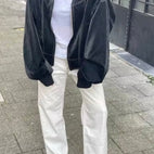 Blouson Bomber Femme ? Style Ample ? Fermeture à Glissière ? Style Décontracté Urbain ? Confortable. La coupe ample et la fermeture éclair rendent ce blouson parfait pour superposer et varier les tenues. Idéal pour un style cool et à la mode, parfait pour les journées plus fraîches.